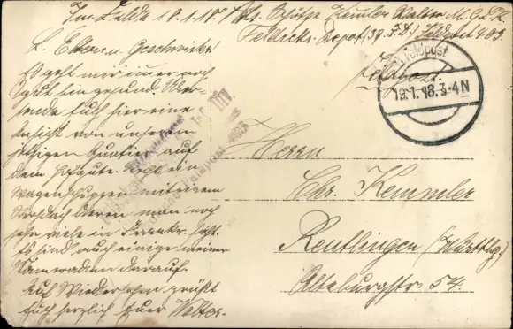 Zustand, siehe Scan, gelaufen, 1918 - ca 14 cm X 9 cm