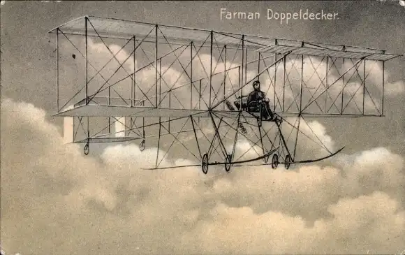 Ak Farman-Doppeldecker, Flugzeug, Flugpionier