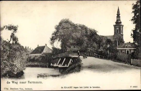 Ak Farmsum Groningen, Straße, Brücke, Kirche