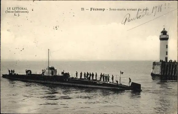 Ak Fécamp Seine Maritime, Französisches U Boot, Leuchtturm