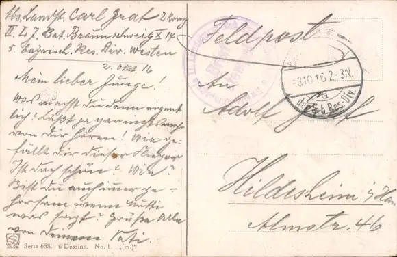 Zustand, siehe Scan, gelaufen, 1916 - ca 14 cm X 9 cm