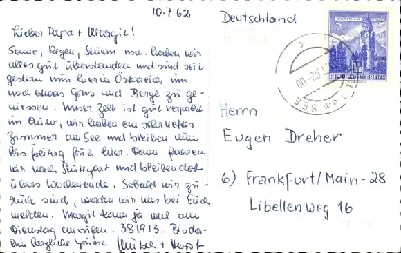 Zustand, siehe Scan, gelaufen, 1962 - ca 9 cm X 14 cm