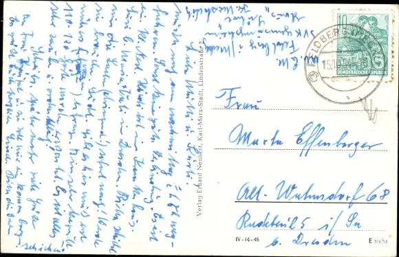 Zustand, siehe Scan, gelaufen, 1954 - ca 14 cm X 9 cm