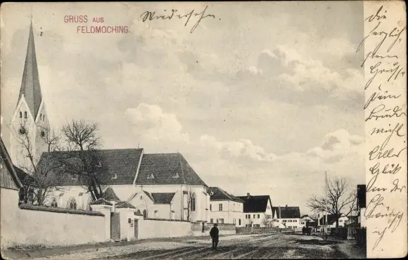 Ak Feldmoching München Bayern, Teilansicht mit Kirche
