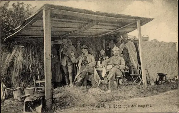 Ak Feldvilla Götz bein den Bayern, Deutsche Soldaten in Uniformen, I WK