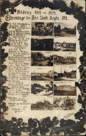 Ak Feldzug 1914 - 1917, Ehrentage des Res. Inf. Regts. 82, I WK