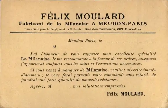 Ak Felix Moulard, Fabricant de la Milanaise a Meudon-Paris