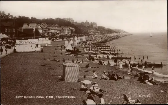 Ak Felixstowe Suffolk England, East Beach from Pier