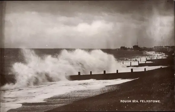 Ak Felixstowe Suffolk England, Rough Sea