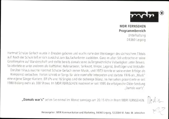 Ak Fernsehmoderator Hartmut Schulze-Gerlach, Portrait, Autogramm