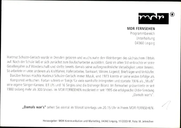 Ak Fernsehmoderator Hartmut Schulze-Gerlach, Portrait, Autogramm