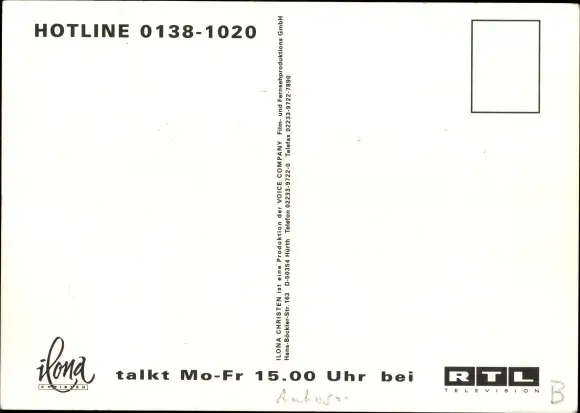 Ak Fernsehmoderatorin Ilona Christen, Portrait, RTL, Autogramm