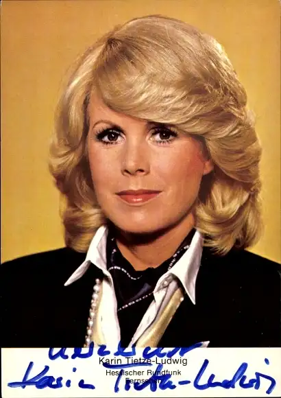 Ak Fernsehmoderatorin Karin Tietze Ludwig, Hessischer Rundfunk, Autogramm
