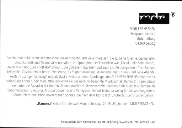 Ak Fernsehmoderatorin Ramona Leiß, Portrait, Autogramm
