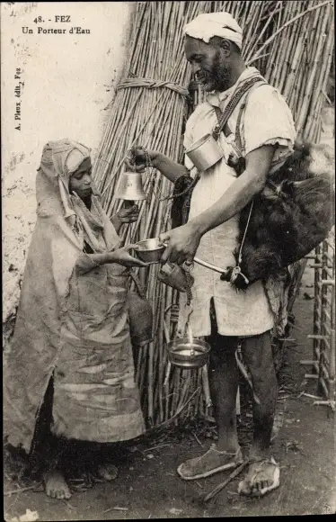 Ak Fès Fez Marokko, Un Porteur d'Eau, Wasserverkäufer, Kind