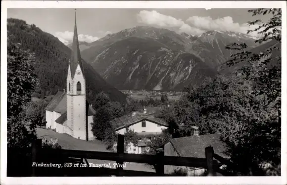 Ak Finkenberg in Tirol, Blick auf den Ort, Tuxertal, Kirche