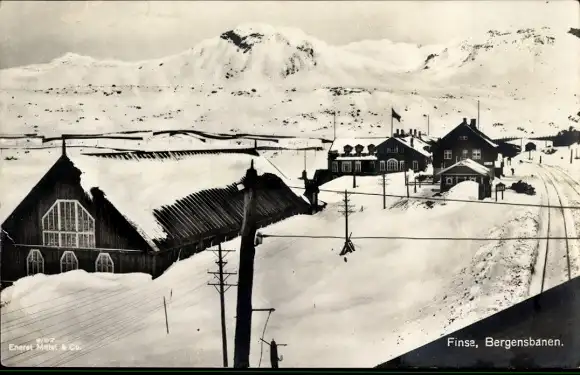 Ak Finse Norwegen, Bergensbanen, eingeschneiter Ort