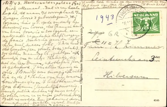 Zustand, siehe Scan, gelaufen, 1943 - ca 14 cm X 9 cm