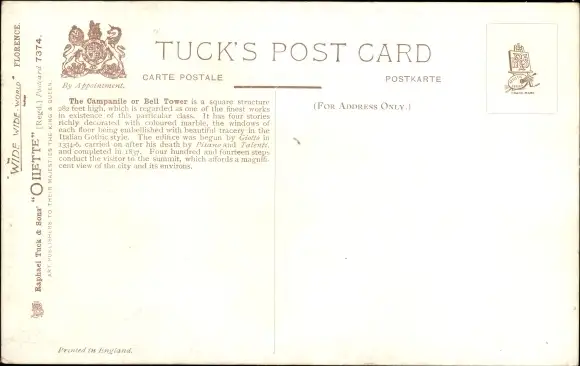 Ak Firenze Florenz Toscana, The Campanile or Bell Tower
