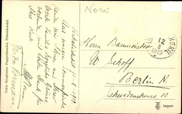 Zustand, siehe Scan, gelaufen, 1919 - ca 14 cm X 9 cm
