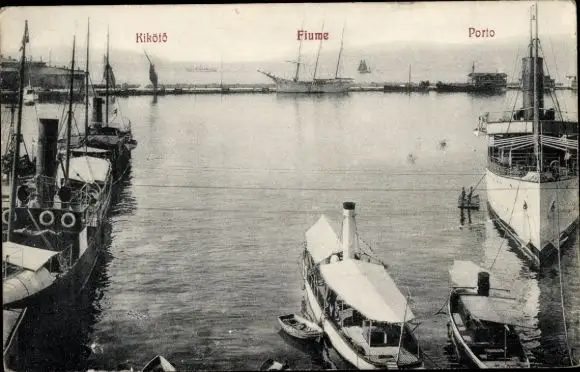 Ansichtskarte,Postkarte,Hafen,Schiffe,Boote,Dampfer,Boot,Dampfschiff,Schiff,Kahn,Lastkahn,Segelboot,Segelboote,Lastkähne,steamer,Fiume,Rijeka,Reka,St., Veit, am, Flaum,Szentvit,Susak,Sušak,Fiume