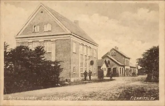Ak Fjerritslev Vendsyssel Dänemark, Post, Bahnhof