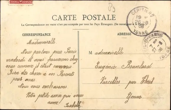 Zustand, siehe Scan, gelaufen, 1908 - ca 14 cm X 9 cm