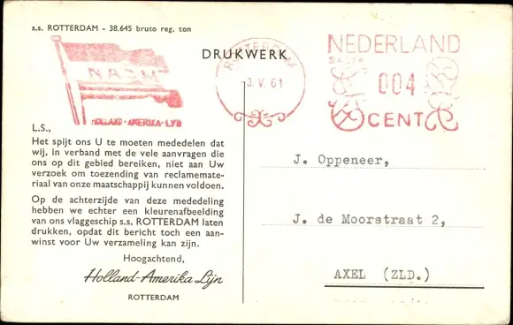 Ak Flagship SS Rotterdam, Holland America Line, HAL, Dampfschiff