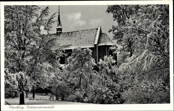 Ak Flensburg in Schleswig Holstein, Diakonissenanstalt, Winter
