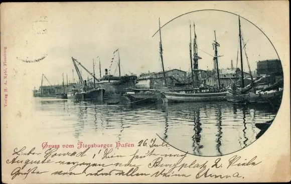 Ansichtskarte, Postkarte, Hafen, Schiffe, Boote, Dampfer, Boot