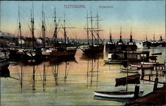 Ak Flensburg in Schleswig Holstein, Hafen, Segelschiffe, Boote