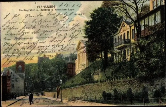 Ak Flensburg in Schleswig Holstein, Nordergraben, Bellevue, Freimaurerloge