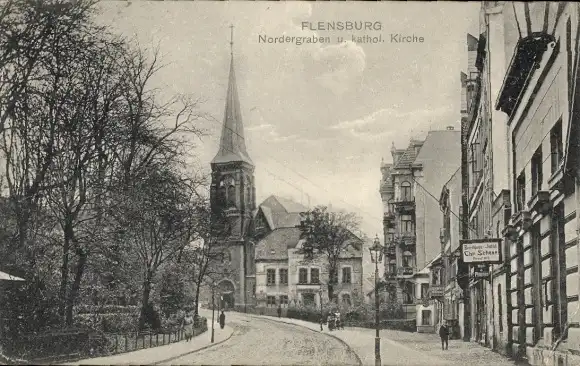 Ak Flensburg in Schleswig Holstein, Nordergraben, Katholische Kirche