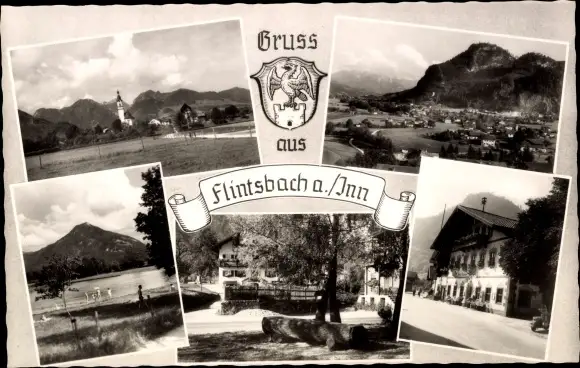 Ak Flintsbach am Inn Oberbayern, Ortsansicht, Ortspanorama, idyllischer Blick auf Gewässer