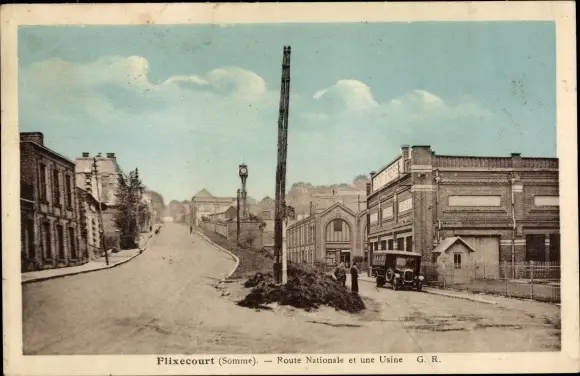 Ak Flixecourt Somme, Route Nationale et une Usine