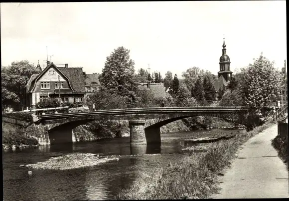 Ak Flöha in Sachsen, An der Flöha, Brücke, Kirchturm