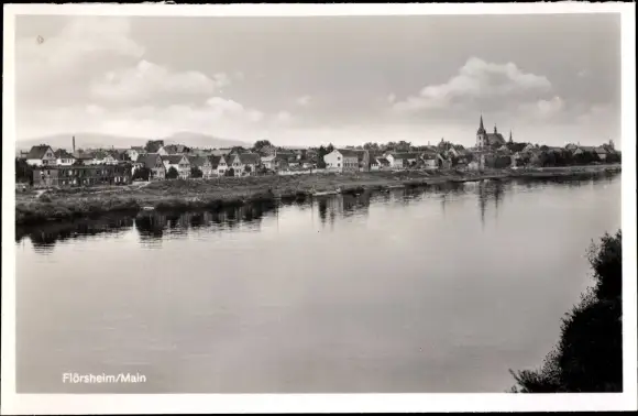 Ak Flörsheim am Main, Blick über den Main auf den Ort