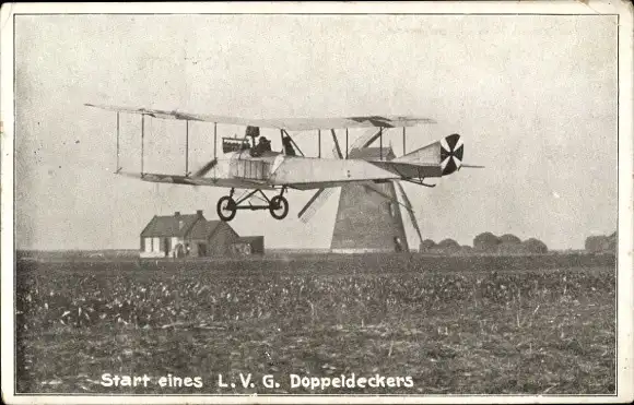 Ak Flugpionier, Start eines L.V.G. Doppeldeckers