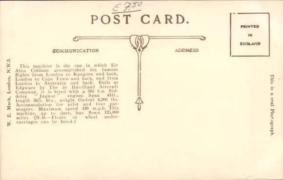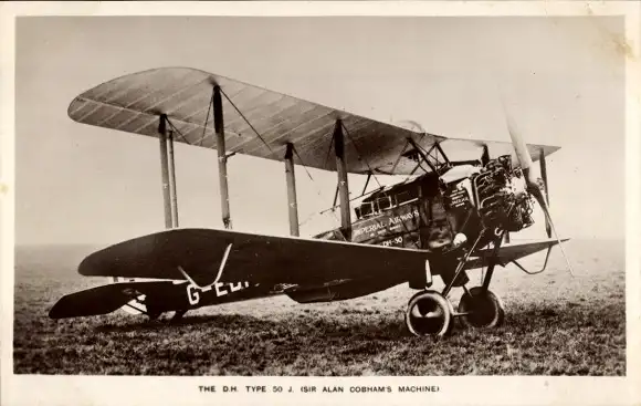 Ak Flugzeug 50 J., Alan Cobham, Doppeldecker