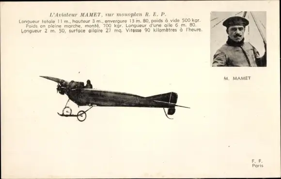 Ak Flugzeug, Aviator Mamet, auf REP Monoplane, Flugpionier