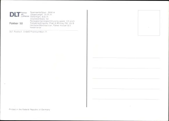Ak Flugzeug Focker 50, DLT, Heckflosse