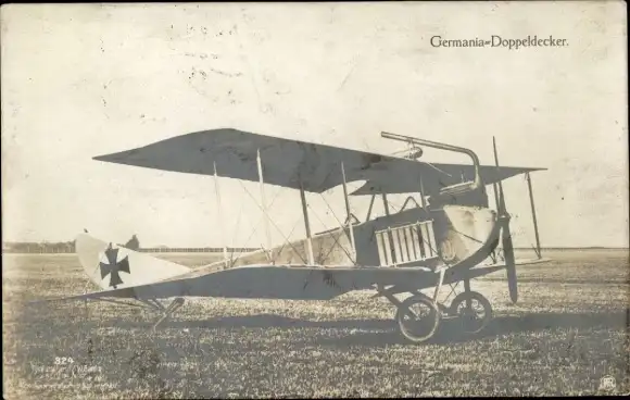 Ak Flugzeug Germania Doppeldecker, Sanke 324