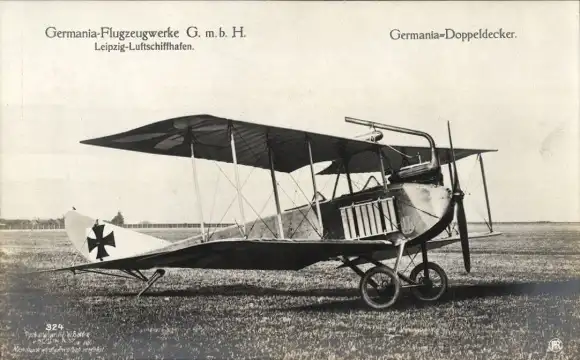 Ak Flugzeug Germania Doppeldecker, Sanke 324