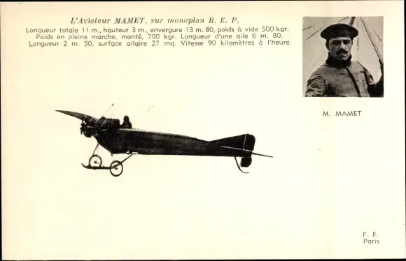 Ak Flugzeug, L'Aviateur Mamet, sur Monoplan R.E.P.