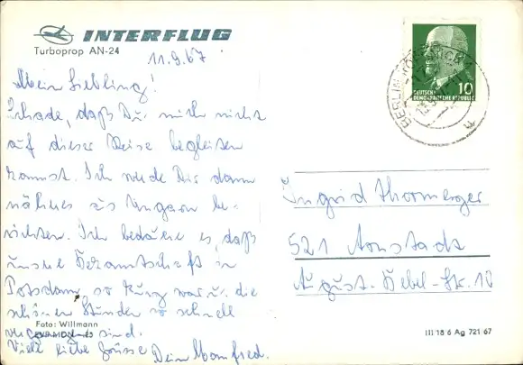 Zustand, siehe Scan, gelaufen, 1967 - ca 15 cm X 10 cm