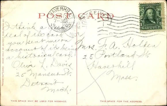 Zustand, siehe Scan, gelaufen, 1907- Photochromie Detroit Publishing Company 10028 - ca 14 cm X 9 cm
