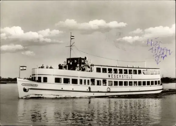 Ak Flussdampfer Weserstolz, Otto W.A. Schreiber Reederei