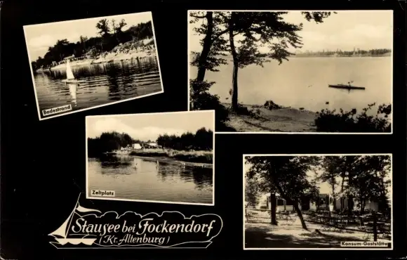 Ak Fockendorf in Thüringen, Stausee, Badestrand, Zeltplatz, Konsum-Gaststätte