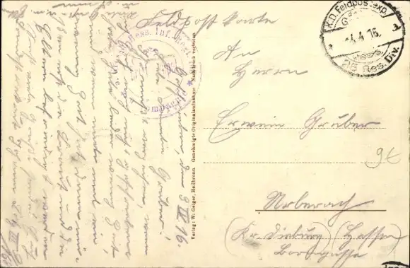 Zustand, siehe Scan, gelaufen, 1916 - ca 14 cm X 9 cm