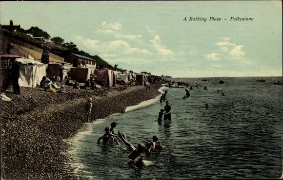 Ak Folkestone Kent England, A Bathing Place
